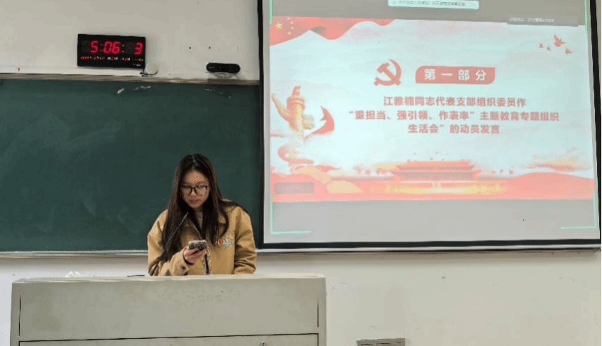 学生各支部将“重担当、强引领、作表率”主题活动作为加强党员队伍建设、推动党建引领聚势赋能的重要举措。学院将活动与中心工作紧密结合,融入教学、科研、育人、服务地方、安全稳定等具体工作领域,通过组织专题学习、开展主题活动、选树先锋典型、完善长效机制,切实强化基层党组织的政治功能和组织功能,充分激发师生党员的先锋模范作用。